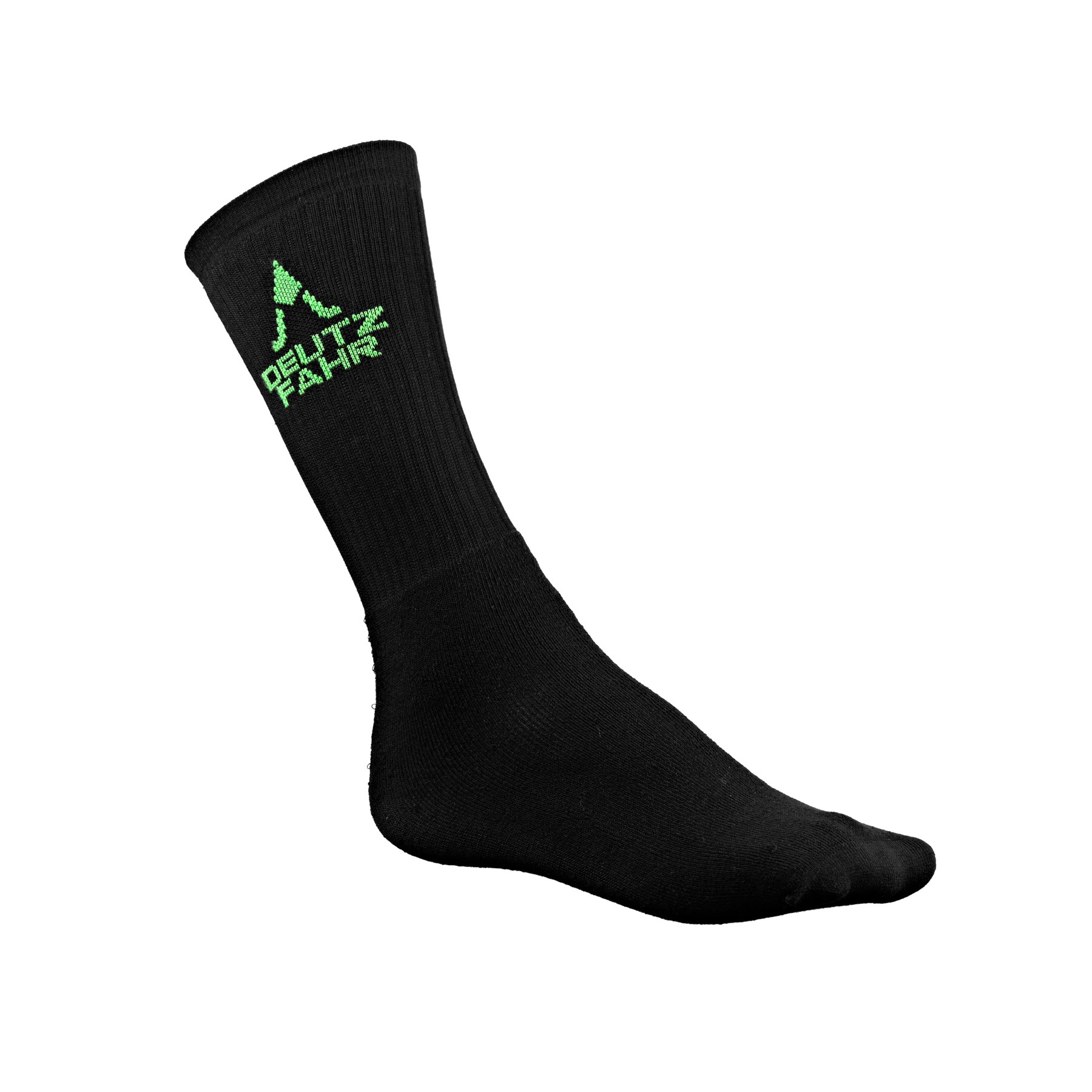 Zwarte, korte, buisvormige badstof sokken met groen DEUTZ-FAHR-logo. Universele maat. Verpakt in polybags.