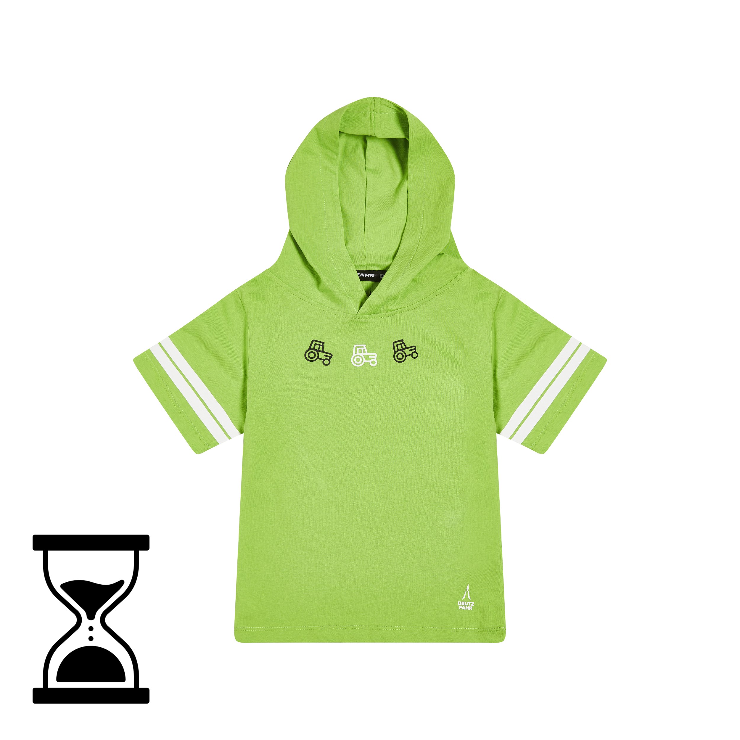 Het groene DEUTZ-FAHR T-shirt met capuchon voor kinderen is een must-have voor kleine liefhebbers van dit merk. Dit groene T-shirt is gemaakt van 100% katoen en heeft een frisse, levendige uitstraling. De kleine tractoren op de voorkant en de witte strepen op de mouwen maken het kledingstuk speels en stijlvol.