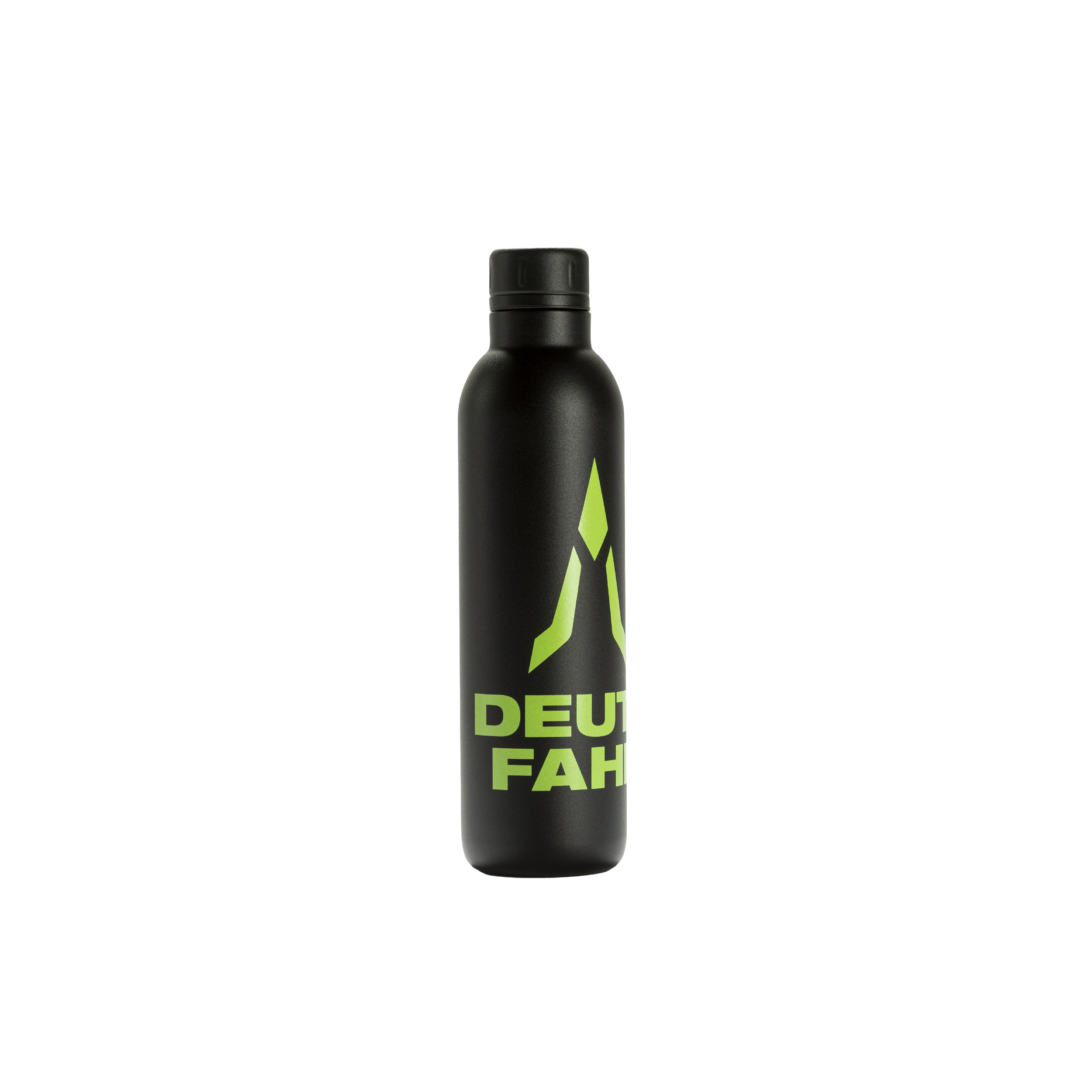 De dubbelwandige DEUTZ-FAHR thermofles van roestvrij staal met koperen isolatie houdt dranken 48 uur koel en minstens 12 uur warm. De bijzondere structuur voorkomt dat op het uitwendige oppervlak condens kan ontstaan. De thermosfles heeft een roestvrijstalen schroefdop die niet druppelt en een inhoud van maximaal 510 ml.
